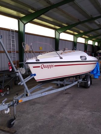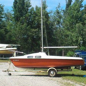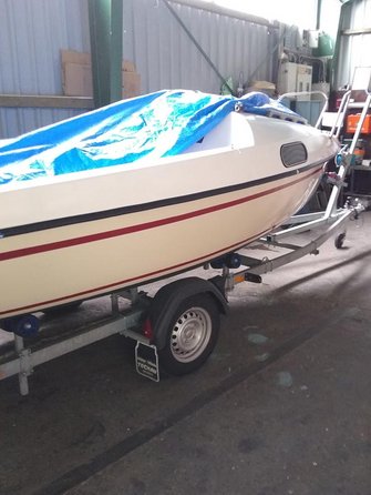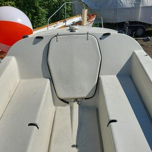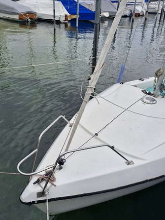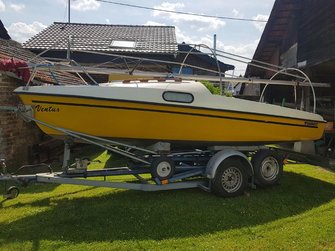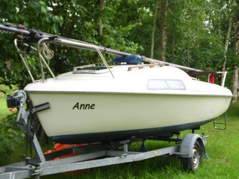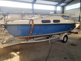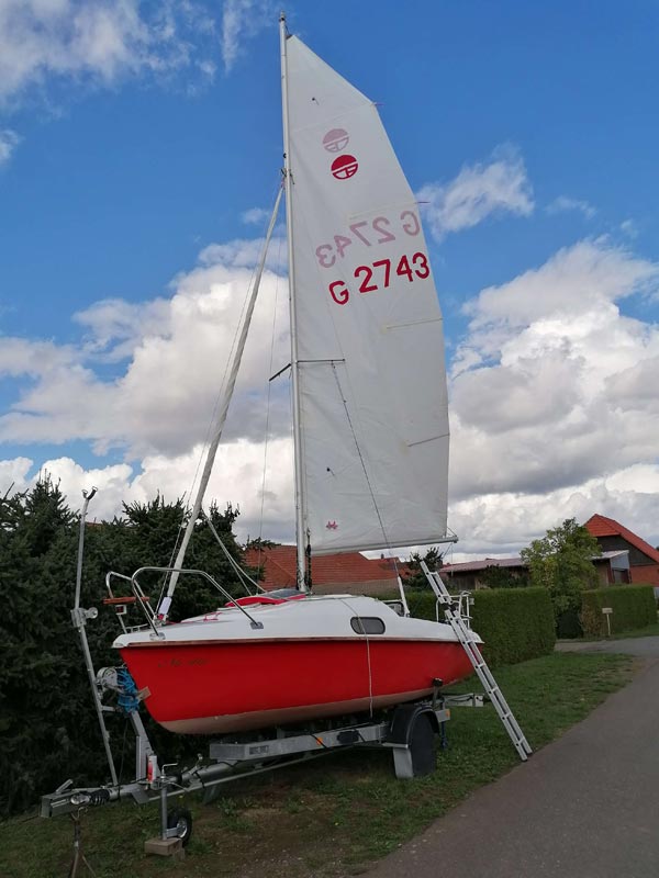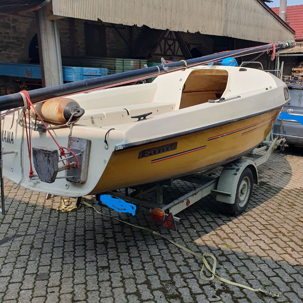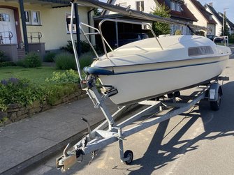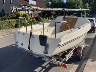 Hierin enthalten ist der Trailer (ungebremst), das komplette Boot (mit Edelstahlbeschlägen), nahezu neue Segel (Groß: Lishke, Fock: Clown-Sails) und der AB Yamaha 2.5 PS,4-Takter (Inspektion gerade gemacht).