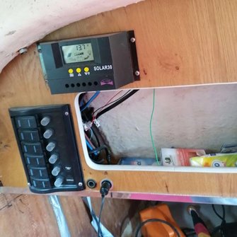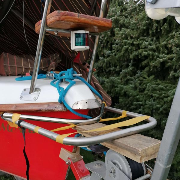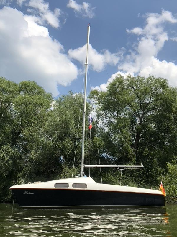 Zubehör: Solar mit 12V 100ah Gelbatterie, Echolot, Mastlegevorrichtung, Blitzschutz, allgemeines Zubehör wie Anker, Boien usw. sind dabei