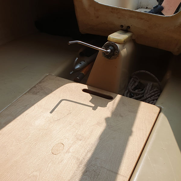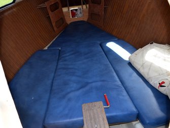 Für meine FAM habe ich letztes Jahr ein Vorluk sorgfältig aus Mahagoni gebaut, der Deckswölbung angepaßt, mit Benar gestrichen. Ausschnittmaß 480 x 440 x 380 mm, und dann doch nicht eingebaut, weil es mir optisch zu hervorstechend erschien. Man könnte es weiß streichen, es würde sich dann besser einfügen. Zu schade, jedenfalls, um im Keller liegenzubleiben.